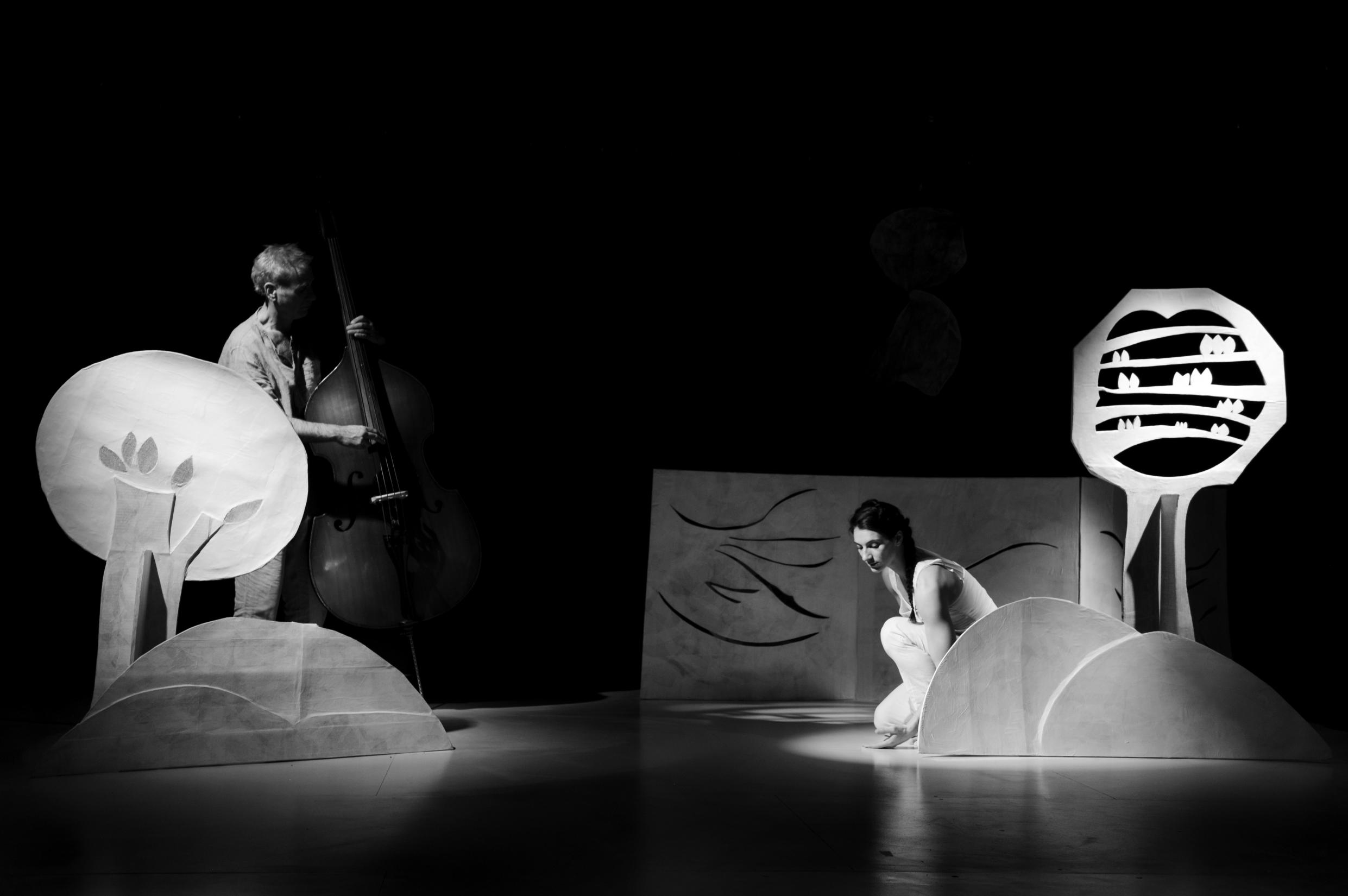 « Les cordes de la contrebasse se tendent. Les premières notes bondissent dans le silence. Elles dansent, cabriolent, nous invitent à pénétrer dans la ronde du conte. Un monde merveilleux s’entrouvre et s’offre à nous par la grâce de la danse et la beauté du verbe. Nous écoutons, nous regardons, nous voyageons dans un décor fragile et éphémère de papier. Papier de dentelle qui se plie, qui s’élève au-delà du présent vers un monde qui nous parle de rêve et de beauté. Pour ce magnifique voyage poétique, mille bravos et mille mercis. » Françoise